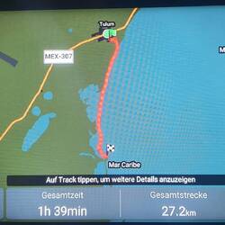 In der Wohnstrasse verbrachten wir eine ruhige Nacht. Wir fuhren auf die Halbinsel Boco Paila. Zuerst gings an vielen Hotels vorbei, bis wir beim Eingang des Nationalparks Sian Ka'an ankamen. Nach demLæs mere