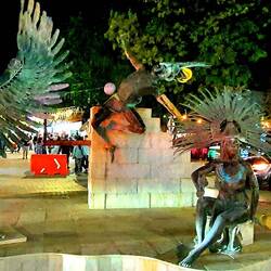 Ausser dem Funkgerät des Wach-Menschen 4 m von uns enfernt war die Nacht ruhig. Die Fahrt ging als erstes nach Playa del Carmen zu einer Agua Purificada H2O Station, da unser Vorrat nur noch 20 lLæs mere