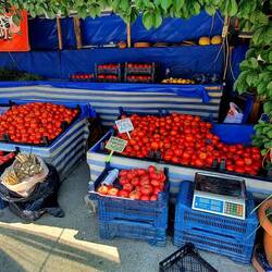Auf dem Rückweg zum Camper sahen wir einen Gemüsehändler mit Lieferwagen. Offenbar die einzige Möglichkeit für die Menschen hier einzukaufen. Wir kauften ca. 1 kg Tomaten 🍅 für 1€.