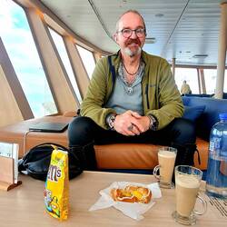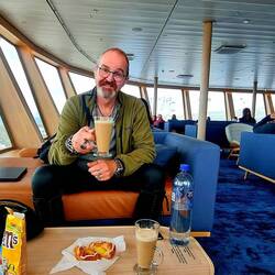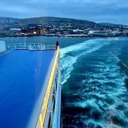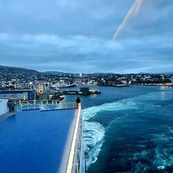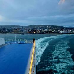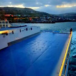 Traveler19. bis 22. Oktober Nörrona mit Pause in Torshavn Am 18.10 während des Abendessens wurden wir informiert, das eine schwere Sturmflut über Norwegen, Dänemark und Norddeutschland zieht. Aus diesem Grund werde die Abfahrt in Torshavn um 24 Stunden verschoben. So blieben wir den 20. Oktober bis 18:00 Uhr auf den Faroer Inseln. Wir machten am 19. und am 20. Oktober einen Ausflug ins Städtchen. Da es kalt und windig war, verkrochen wir uns schnell wieder auf das Schiff. Und verbrachten die Zeit viel in der gemütlichen Lounge. Die Fahrt vom 20. 10 18:00 Uhr bis 22. Oktober 10:00 Uhr verlief ruhig. Nach dem Frühstück war es endlich soweit und wir fuhren nach zweieinhalb Monaten wieder in Hirtshals auf das Festland. Happy das alles gut gelaufen und wir gesund und die Black Pearl heil ist. 😊 Dann günstiger tanken, Wasser und im Lidl einkaufen. Wir werden uns einfach Wetter technisch treiben lassen und schauen, wohin und wann es uns in Richtung Heimat treibt. Schön wieder auf dem Heimatplaneten zu sein.