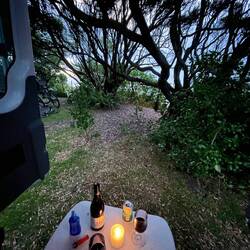 22:00 Get camper ready for the night, drink beer