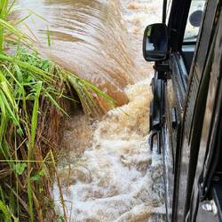 Mitten im strömenden Regen rollte unser Safari-Jeep durch die Pfade von Hurule Eco Park, die sich in zum Teil reißende Bäche verwandelt hatten, als wir plötzlich festsaßen – ein Stillstandもっと詳しく