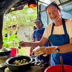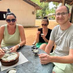 Mit einem Ochsenkarren und Ruderkatamaranboot ging es heute zu einem kurzen Kochkurs in ein traditionelles singhalesischen Haus, wo wir lernten, die köstlichen Poli Roti - ein Fladenbrot aus Kokosもっと詳しく