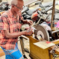 …warme Stirnölguss, den wir uns - nach weiterer Entspannung im Hotel und am honigfarbenen Strand - zusammen mit einer Körper- und Gesichtsmassage gönnten, wohin uns eine Tuk-Tuk-Irrfahrt brachte.