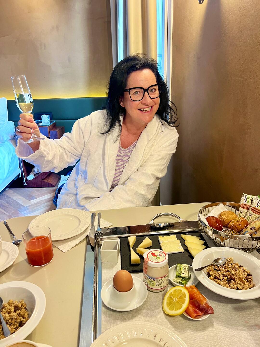 Frühstück am Zimmer – leises Licht durch die Vorhänge, Kaffee in der Hand, Venedig noch im Flüsterton.