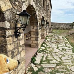 Nach der Besichtigung der Kirche stiegen wir noch auf eine Anhöhe und besichtigten von oben die Ruinen der Skanderbeg Festung fast an der Spitz des Kaps. Den Abstieg hinunter sparten wir uns aber.