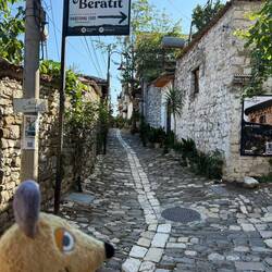 Nach diesem sehr schönen Besichtigungspunkt fuhren wir zu unserem heutigen Tagesziel Kruja. Dort angekommen, stellten wir uns in der Nähe der Festung auf einen Parkplatz. Wieder Erwarten war die Fahrt hierher sowie das Einparken relativ problemlos verlaufen, obwohl die Straßen nicht besonders breit sind.