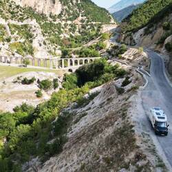 Heute nutzten wir die Passstraße, die sich von Tepelena nach Kuç schlängelt. Unseren ersten Halt legten wir am Ali Pascha Aquädukt ein. Auf den Bildern in unserem Reiseführer sieht es gewaltiger aus als es in Wirklichkeit ist. Es war ganz nett, aber nicht umwerfend.