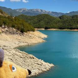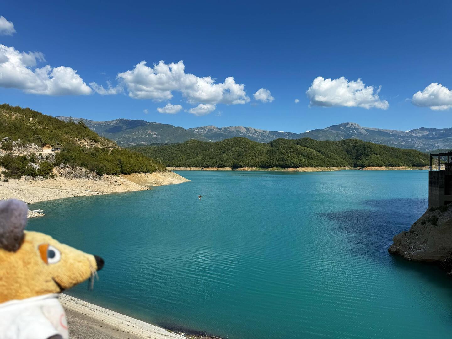 Etwas unterhalb von der Staumauer des Sees parkten wir unser Mausmobil und gingen die letzten Meter die kurvenreiche schmale Straße hinauf. Der See sah wirklich nicht schlecht aus. Ob wir in Anbetracht der „Straße“ allerdings noch einmal diese Fahrt auf uns nehmen würden, um hierher zu kommen, wagen wir zu bezweifeln.