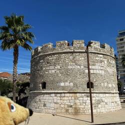 Nahe der Strandpromenade befindet sich der alte venezianische Turm. Laut dem Aushang sollte um 13:00 Uhr eine englischsprachige Multimedia-Show stattfinden. So lange wollten wir aber nicht warten, da es erst um 11:30 Uhr war. Zufällig öffnete sich in diesem Moment die Tür und die Mitarbeiterin bat uns hinein, da sie in 5 Minuten die englischsprachige Version laufen lassen wollte. Bis zum Beginn gingen wir auf den Turm hinauf und genossen das Panorama der Stadt um uns herum.