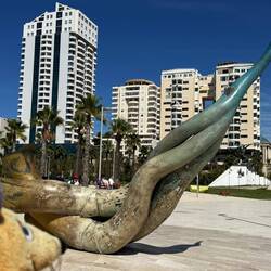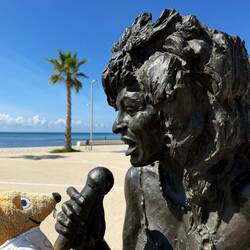 Nach einem interessanten Tag in Tirana war unser heutiges erstes Ziel die Hafenstadt Durrës. Dort angekommen, hatten wir Glück und fanden im Zentrum bei einer Autowaschanlage einen Parkplatz. Der Parkplatz liegt fast direkt gegenüber der Strandpromenade. Diese ist sehr hübsch gestaltet. Unter anderem gibt es lebensgroße Statuen von berühmten Popstars.