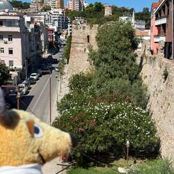 Von der Festung hatten wir einen sehr schönen Blick auf die Stadt. Die Festungsanlage wird vom nachträglich dort hinein gebauten monumentalen Skanderbeg-Museum dominiert. Daneben kann man noch die Ruinen der ehemaligen Moschee (hier insbesondere das Minarett) sehen. Leider hat der berühmte Festungsturm durch ein Erdbeben sehr starke Schäden erlitten und kann nun nicht mehr bestiegen werden. So mussten wir uns mit einer Außenansicht begnügen.