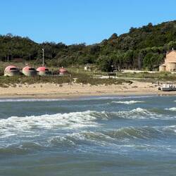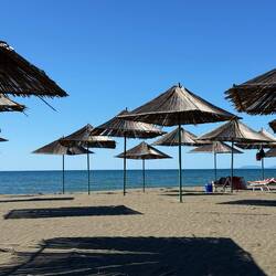 Anhand unseres Reiseführers hatten wir uns für den Abend auf der Halbinsel Rodonit das Restaurant Saint Michelle ausgesucht. Dieses wurde besonders für seine Fischgerichte gelobt, hält Stellplätze für Wohnmobile vor und bietet sogar einen Pool. Die Straße über die Halbinsel war sehr schmal und kurvenreich (wie kann es in Albanien auch anders sein). Als wir bei dem Restaurant ankamen, trauten wir unseren Augen nicht: Das komplette Gebäude sowie die Stellplätze waren dem Erdboden gleich gemacht. Wir fuhren deshalb ein paar Kilometer zurück und stellten uns auf einen kleinen privat geführten Campingplatz mit vielen ehemaligen Bunkern. Hier stehen wir direkt am Strand.Read more