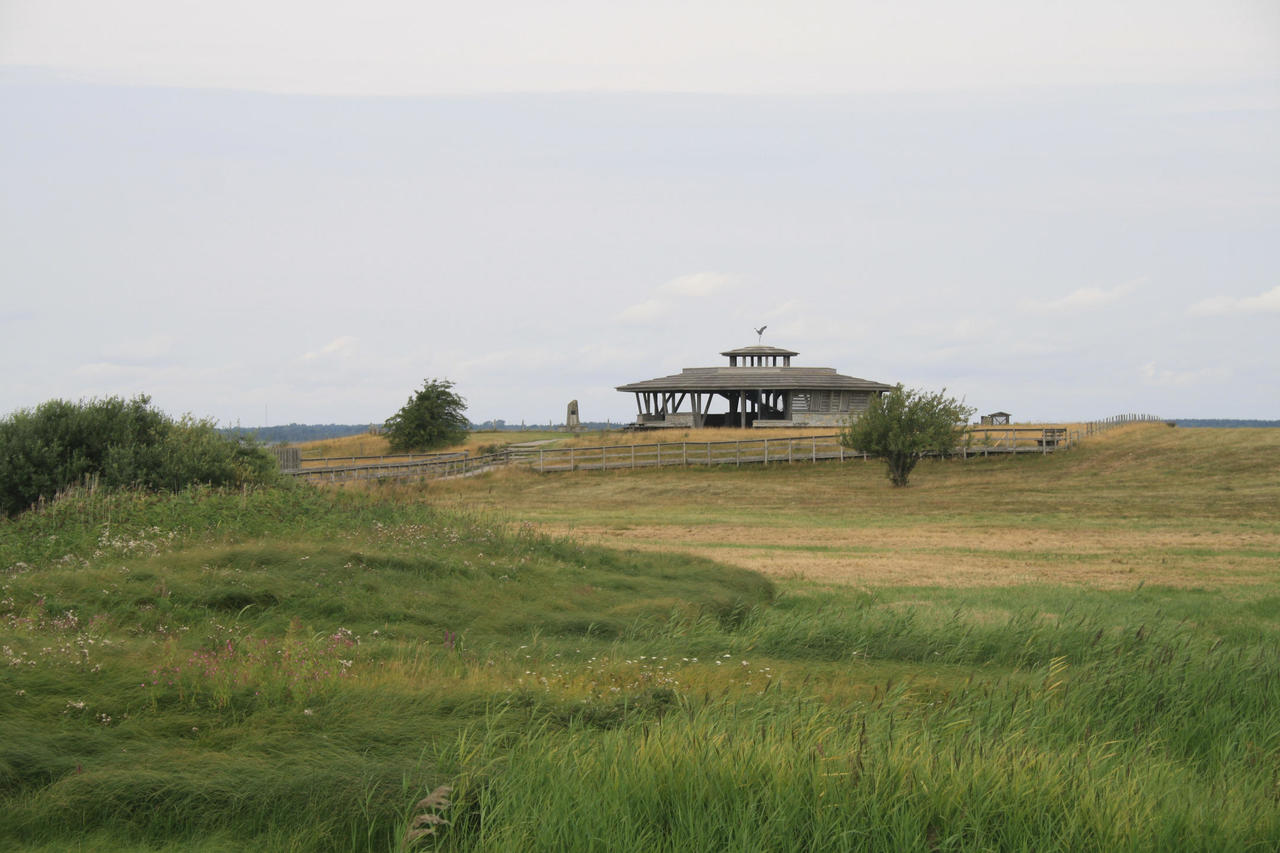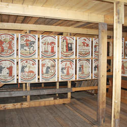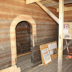 Die Holzkirche ist 2001 abgebrannt. Wir bekommen eine exklusive deutsche Einführung in die Restaurationsarbeiten.