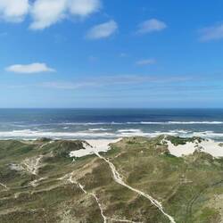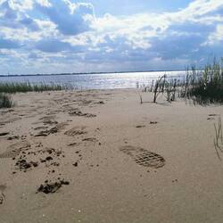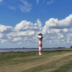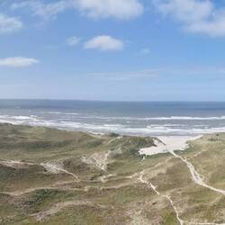 Vor auf den Strand, daran entlang und dann zurück am Leuchtturm entlang.