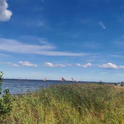 Wir haben uns verabredet und fahren mit weiteren anderen Campern mit den Rädern nach Bodstedt zur Zeesbootregatta.