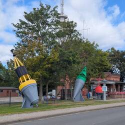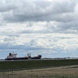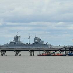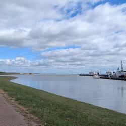 Wir radeln am Außenhafen von Hooksiel am Deich entlang bis zum Jade-Weser-Port. Dort sehen wir gerade ein Kriegsschiff auslaufen. Eine Dame erklärt uns, das es sichRead more