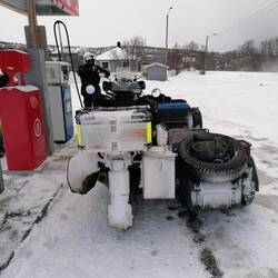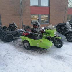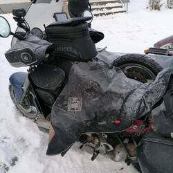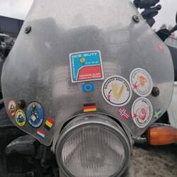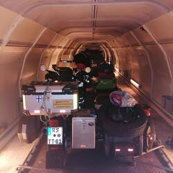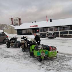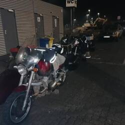 Fährtag, Colorline Oslo-Kiel. Frühstück, aufräumen, packen, Abfahrt in Elverum um 09:30 Uhr. Erst mal tanken. Dann der Schock. Franks BMW Plattfuß vorne. Wahrscheinlich ein Spike zu weit eingedreht oder das Bohrloch wieder aufgegangen nach dem entspiken. Keine Chance auf Abdichten oder flicken. Zeit wird knapp. Dann springt der Reifen auch noch von der Felge. Das wars. Matina mit dem Auto schon zu weit weg. Point of no return überschritten. Frank schickt uns weiter. "Ihr müsst die Fähre erwischen." Stimmt, aber das scheiß Gefühl bleibt. Also ab. Frajos Ural will auch nicht so richtig. Wir verlieren Reiner und Gerd. Ankommen ist alles, bloß nicht stehen bleiben. Kurz nach 12 am Terminal eingeflogen. Die 2 kommen ein paar Minuten später an. Raucherpause gemacht, wir nicht gesehen. Egal, alle da. Frank steht noch an der Tanke und wartet auf Abschlepper. Olaf kann auch nichts anleiern, trotz Erfahrung vom letzten Jahr.