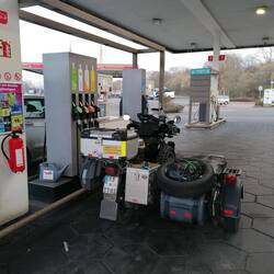 Treffpunkt Tankstelle bei km 130. Max schon wieder weg. Tanken wie verabredet. Diesmal Kredit und EC Karte abgelehnt. Werner hat wieder mal aushelfen können.