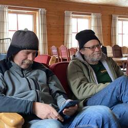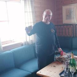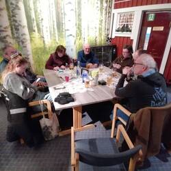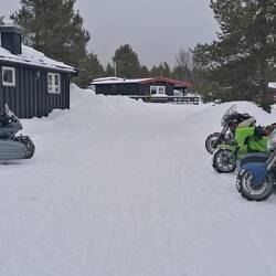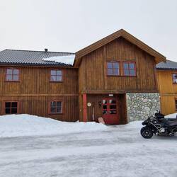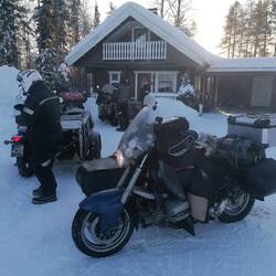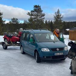 Morgens länger liegen geblieben und dann gemütlich gefrühstückt. Gegen Mittag konnten wir dann endlich ins Haus ziehen. Alle Nordkapp Fahrer, die die, Woche noch in Femundsundet beim Eisarsch bleiben, sind jetzt da. Jetzt warten wir auf die Föhrfshrer aus Oslo. Matina mit Auto ist die erste.