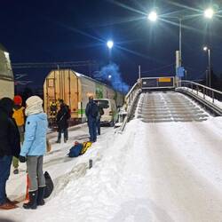Der Nachtzug fuhr pünktlich in Rovaniemi ein. Frühstück wurde uns gebracht. Zeit genug zu packen und sich für den Tag fertig zu machen. Kabine verlassen, Türe zufallen lassen. Hmmm, warum sind due anderen Kabinentüren alle noch auf? 3 Schritte weiter wusste ich es. Weil man dann noch sein Handy raus holen kann. Mist, ich habe es echt drin liegen lassen. Zum Glück hält der Zug 15 Minuten. Schnell eine freundliche Bahn Mitarbeiterin gesucht, die mir noch helfen konnte. Puhh, Schwein gehabt. Georg angerufen. Wir treffen uns bei deren Hütte. Auf zu nächsten Tanke und weiter. Alle wohlauf z und freuen sich. Spiken ist angesagt. Danach starten wir gegen 10:30 Uhr gen Norden zum Nikolaus am PolarkreisЧитать далее
