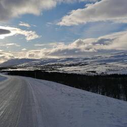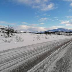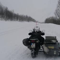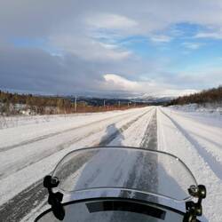 Zurück auf die 87 den anderen hinterher. Zurück auf der E6 cruisen gen Narvik. Die Entscheidung, auf der Straße zu wenden bereute ich sofort, als mich fehlender Gripp am Vorderrad wieder im Tiefschnee landen ließ. Der Trucket hinter mir hielt an und half unbürokratisch.