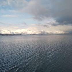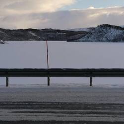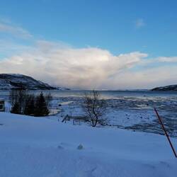 Narvik pünktlich gegen 09 Uhr verlassen. Kurz tanken und ab die wilde Fahrt. Immer die E6 runter. Dann links ab auf die 827 zur Fähre Kjöpsvik-Drag. Sehr schöne Straße mit guter Qualität. Ausblicke ohne Ende. Sehr schönes Farben-und Lichtspiel auf Meereshöhe. Die Seen in den Bergen zugefroren. Herrlicher Fahrtag mit tollsten Eindrücken.