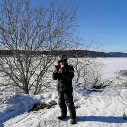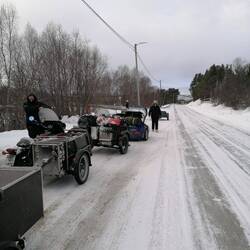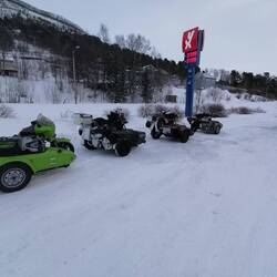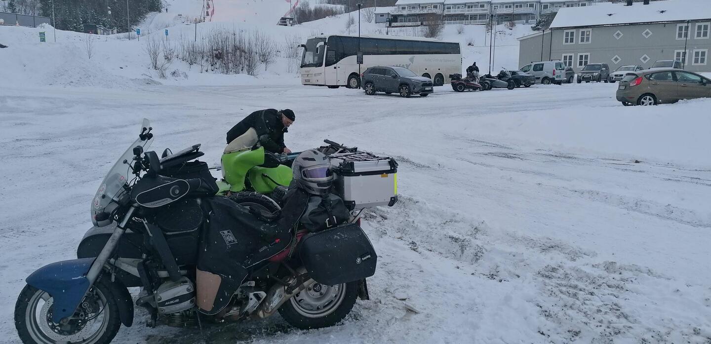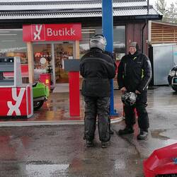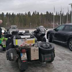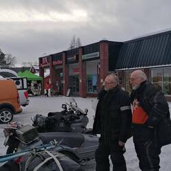 Bei kleinen Plusgraden Richtung Norwegen gestartet. Alle hatten irgendwie Verspätung. Wirklich pünktlich um 9 genug nichts. Dann Schock. Mein Anschlußkabel für das Heizvisier weg. Nicht gefunden. Zum Glück passte das Kabel von chinesischen Ersatzvisier. Nun gut.