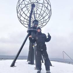 Kalt, Wind, Schneetreiben, so machten wir weiter bis zum Ziel. 11:00 Uhr waren wir am Nordkapp.