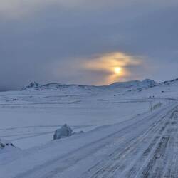 Die Fahrt hierher konnten wir bei schönstem Wetter genießen. Sonne, blauer Himmel, weiße Schneelandschaft, Herlich. Straße war frei und gut geräumt. Das änderte sich aber schleichend, je weiter wir nach Norden kamen. Richtig zu wurde sie aber nie.