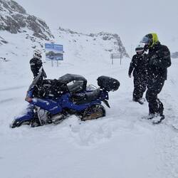 Oben auf dem Pass war es soweit wieder in Ordnung. Es wurde trockener und der Schnee auf der Straße etwas griffiger.