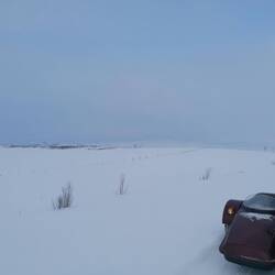Beim Aufwachen gegen 7:00 Uhr schneit es leicht. Das gibt Hoffnung. Leider ist das nur von kurzer Dauer.