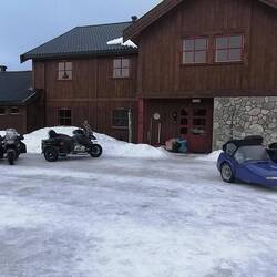 Pünktlich gegen 11 sind wir dann los. Um elfe rum nach Elverum. Diesmal nur zu fünft, Reiner, Frank, Frajo, Gerd und ich. Matina kommt mit Auto nach. Bei herrlich stem Wetter noch mal durchs Elvetal und dann über die 225 Richtung Rena. Olse links ab nochmal verschneite Straße. Früh in Elverum auf dem Camping angekommen. Einlaufbier und entspiken.