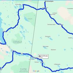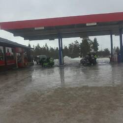 Zum Glück bei km 200 da eine Zapfsäule für Skidoos. Nicht verzeichnet. Glück gehabt bzw. den Kanister nicht gebraucht. Foto gemacht vom Tachostand. Die schönste Straße folgte Richtung Idre. So schön, dass ich nicht gemerkt habe, daß der Tacho nicht mehr geht. Seit der Tanke ausgefallen. Ok, ist halt so. In Idre hab ich es geschnallt. Von hier aus eben ohne.