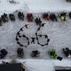 Guido hat Geburtstag. 66 Jahre jung. Sektfrühstück. Draußen sind es milde knapp unter 0°. Alle raus zum Gruppen Foto.