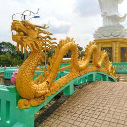 Viel gibt es hier auch über die Geschichte der Region zu lernen. So sind manche Tempel chinesischen Ursprungs. Andere erinnern hingegen mehr an Kambodia und Thailand. Das liegt an dem Einfluss des alten Khmer Emperiums, die weite Teile von Südostasien beherrscht haben.Lue lisää