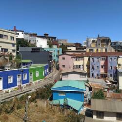 Valparaiso hat nur einen schmalen Streifen Land an der Küste, der Rest liegt auf Hügeln. Man kann Treppen steigen oder die Standseilbahnen vom Anfang des 20. Jahrhunderts nutzen. Wir sind natürlichOkumaya devam et