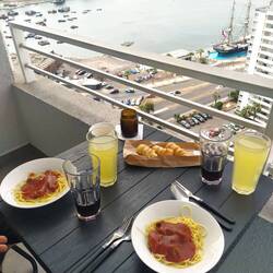 Sonntags gibt's Frühstück auf dem Balkon, mit Blick auf Baustelle und Kirche ⛪. Die Stadt ist wie ausgestorben, alle sind wahrscheinlich vom nächtlichen Durchtanzen im Koma. Wir nutzen die RuheMeer informatie