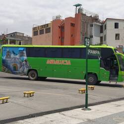 Wir wollen weiter nach Arequipa, zurück zu den Vulkanen. Also auf in die Anden, auf 2.300 Meter Höhe. Das erste Mal Busfahren in Peru ist auch gleich eine Herausforderung: der Bus fährt 1,5 StundenMeer informatie