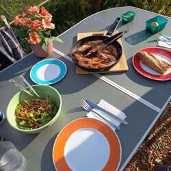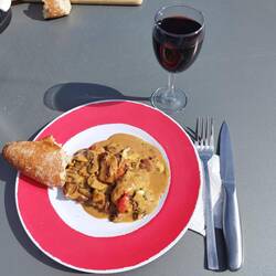 Wieder landen wir zu unserem 2. Stopp in Millau. Erstens ist es nach 612 km auch genug, und außerdem waren wir schon zweimal hier und kennen die Stadt und ein paar verschwiegene Plätzchen.