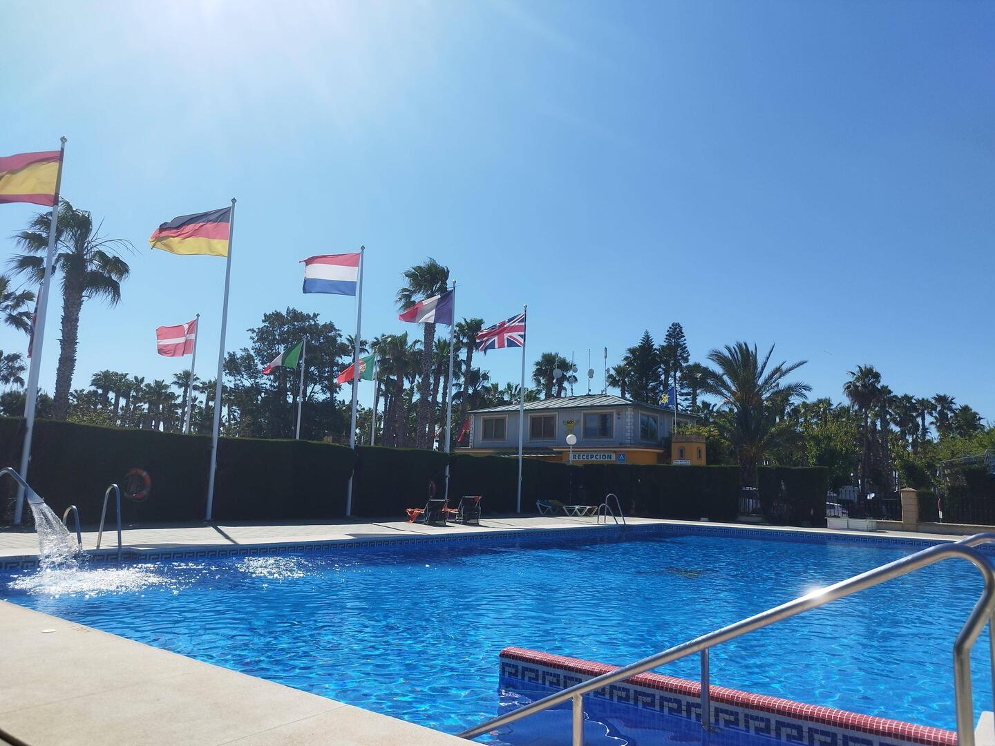 Den etwas kühlen Vormittag verbringen wir diesmal am ebenso kühlen Pool, da es hier deutlich weniger windig ist.