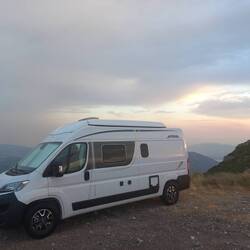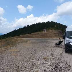 Super spot pour cette nuit. Posés sur un sommet, on a une vue à quasiment 360°... et on a un visiteur du soir. Un petit renard tout calme. Il est assis à nous regarder et nous.... on fait pareil 😝😝