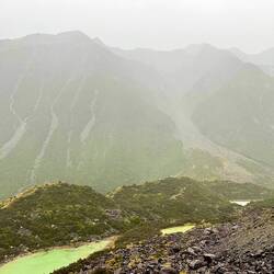 Denn das Wetter lässt uns im Stich. Es ist wie verhext, Seit unserer Ankunft regnet es und die tiefliegenden Wolken lassen keinen Blick auf irgendwelche Gletscher zu. Also tun wir so, als ob es normal wäre und spazieren zu den empfohlenen Outlooks, ohne die schneebedeckten Berge und Gletscher zu sehen. Außerdem sind die Gletscher wegen der höheren Temperaturen inzwischen sehr stark zurückgegangen, so dass man sie nicht so wirklich aus der Nähe sehen kann.