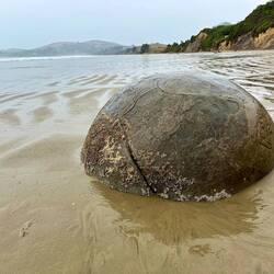 Die bekanntere Attraktion ist aber wahrscheinlich der Moeraki Boulders Beach. Hier liegen geologisch nicht ganz erklärbare runde Gesteins Kugeln. Ob hier Außerirdische vielleicht Billard gespielt haben? Als Touristenmagnet funktioniert es jedenfalls prima.