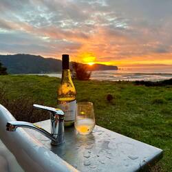 Wir erkunden die Golden Bay bis zum „The nothernmost Part of the South Island“ und genießen traumhafte Sonnenuntergänge aus der Badewanne im Freien.