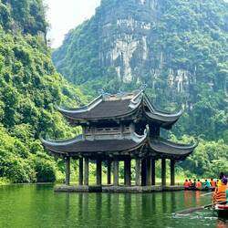 Zwei Bootsfahrten, die durch verschiedene Höhlen führen und uns zu Tempeln bringen, die im Wasser stehen sowie der Besuch der Bai Dinh Pagode decken unseren Bedarf an Kulturhistorischem ab.