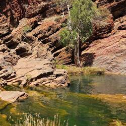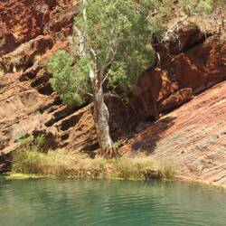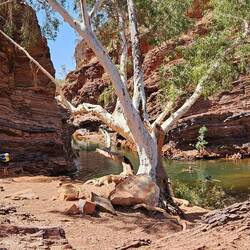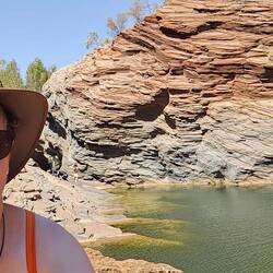 ....wer sagt es denn.... wir haben Empfang 🙄🙄🙄 Die mine in tom price konnten wir leider nicht besichtigen. ...Sonntag !!Die Gorge war wunderschön und das wasser angenehm kühl.
