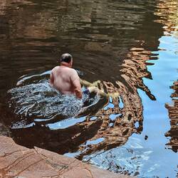 was will man dazu noch sagen. das Wasser war A.... kalt. jürg genoss es. Ich hatte schob vom auf den Steinen sitzen ein kaltes Popöchen 😄