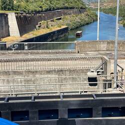 Die erste Etappe geht nach Peso da Régua. Auf der Fahrt dort hin passieren wir mehrere Schleusen. Auch die zweit höchste Schleuse Europas. Das ist schon etwas gruselig aber auch interessant 🧐.Baca lagi