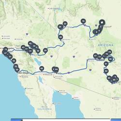 After getting up, did some tidying up on my Roadtrippers App, which has plotted our journey back & forth across the United States of America. It is very easy to quickly forget all the places you have visited & the things that you have done. When it is plotted out on a map we have been everywhere.....nearly.